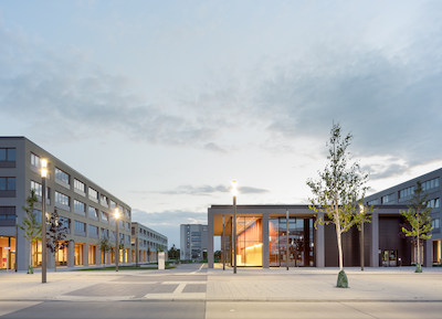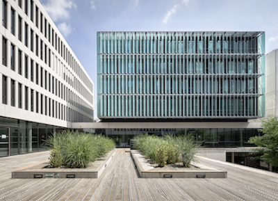 11 mechanical engineering institutes, laboratories, workshops and experimental bays as well as lecture halls, a library and a canteen arrange around a park like centre. Color and plaster concept in cooperation with Jörg Niederberger